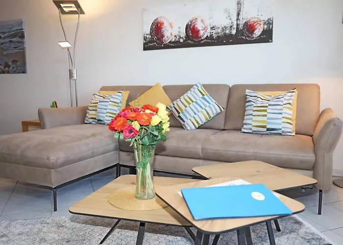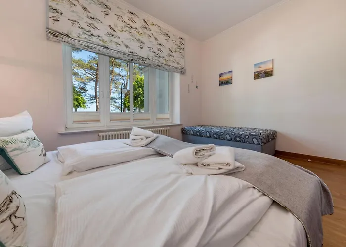 Arkona-Meeresblick Am Prorer Wiek Binz, un appartamento con 2 camere da letto, proporziona prossimità ad attrazioni turistiche come la Prora - Langstes Gebaude der Welt, che si trova a soli 7 minuti a piedi. Gli ospiti potranno godere di una saunain l'appartamento, situato a circa 600 metri daC Dokumentationszentrum Prora.